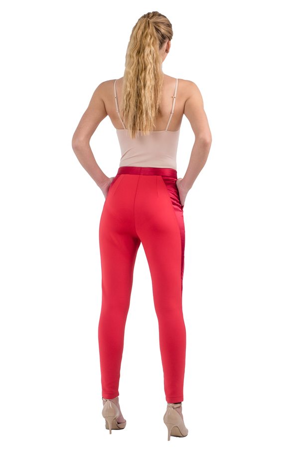 Floren Fitted Trousers. Versatile Statement pants designed high waisted to emphasize the waist. The stretch in pants fit close to skin and allows free movement. Satin has been subtly added in waistband, pockets and side thigh to give a more polished look.
